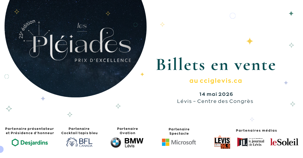 Le Gala les Pléiades est un moment unique qui marque de façon importante le savoir-faire des entrepreneurs et entreprises du Grand Lévis et de Chaudière-Appalaches pour le développement de notre économie.